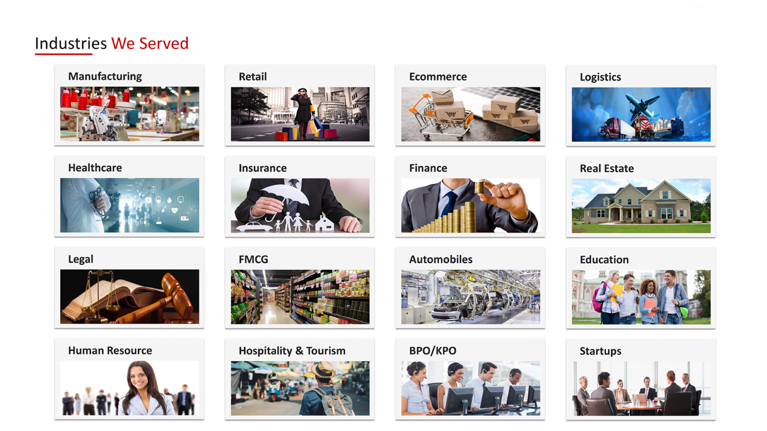Our company is honoured to work with more than 15+ industries ranging from healthcare, education, real estate and other industries. We work with experienced and most importantly motivated team who are focused on helping each and every client achieve the desired success through utilizing considerable expertise and advanced approaches. valuable insights for an effective strategy.